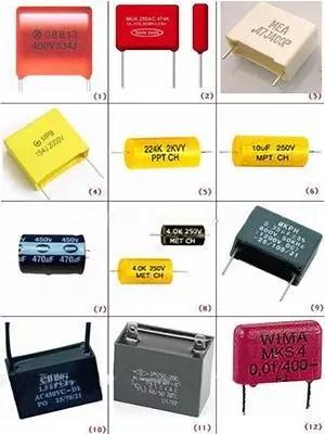 圖1是MKS電容;圖2是瓷片電容;圖3、4是MKP電容;圖5是貼片電解電容;圖6是史普瑞電容Sprague Orange Drop Capacitors;圖7是電機(jī)用電容;圖8是MKT電容;圖9是陶瓷。